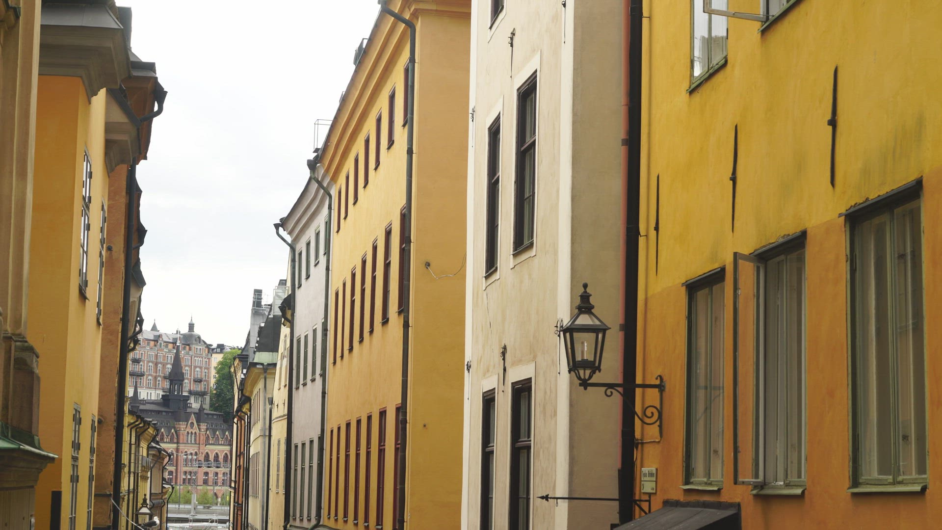 view over old town in stockholm - facades of buildings - skyline - churchtowers -