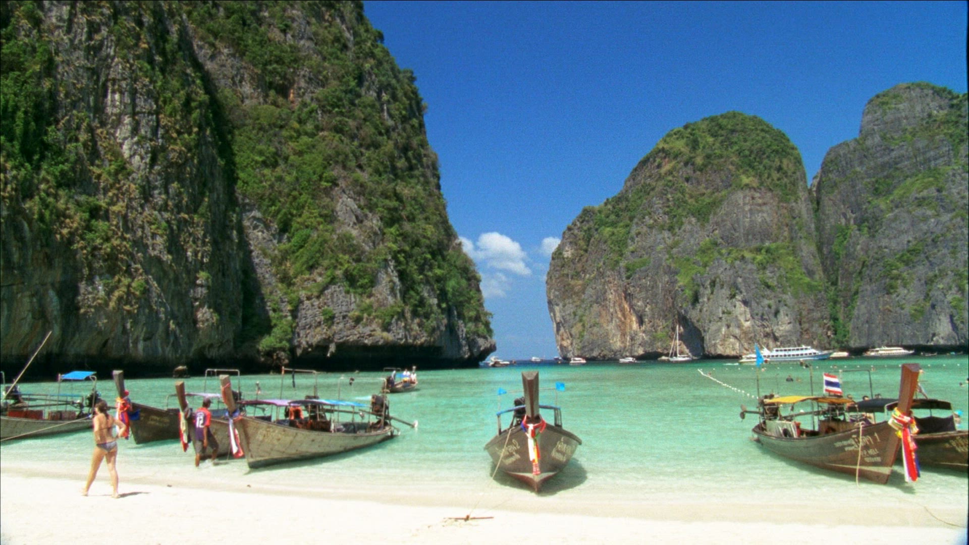 longtail boats at famous Maya Beach in Thailand