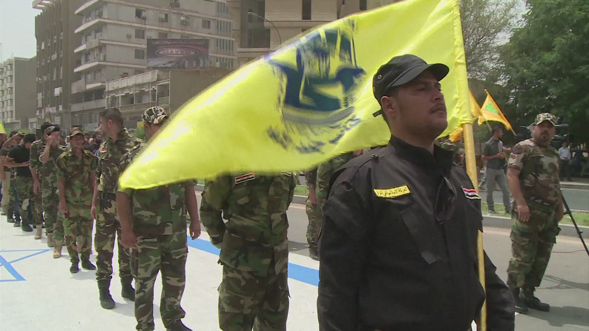 Pro-Iran Iraqi Hezbollah Brigades hold funeral for one of their members in Baghdad who was killed in a drone strike west of Baghdad.