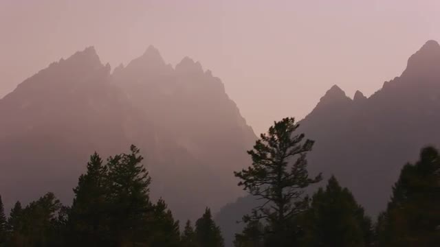 Grand Teton snowy mountain against blue sky with passing clouds 4K (also available in 8K)