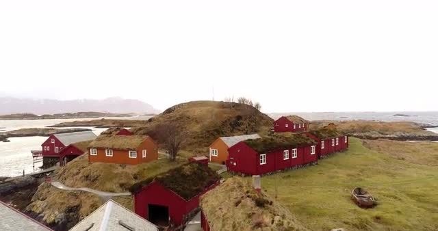 1001315 - Aerial sunset water reflection sea houses