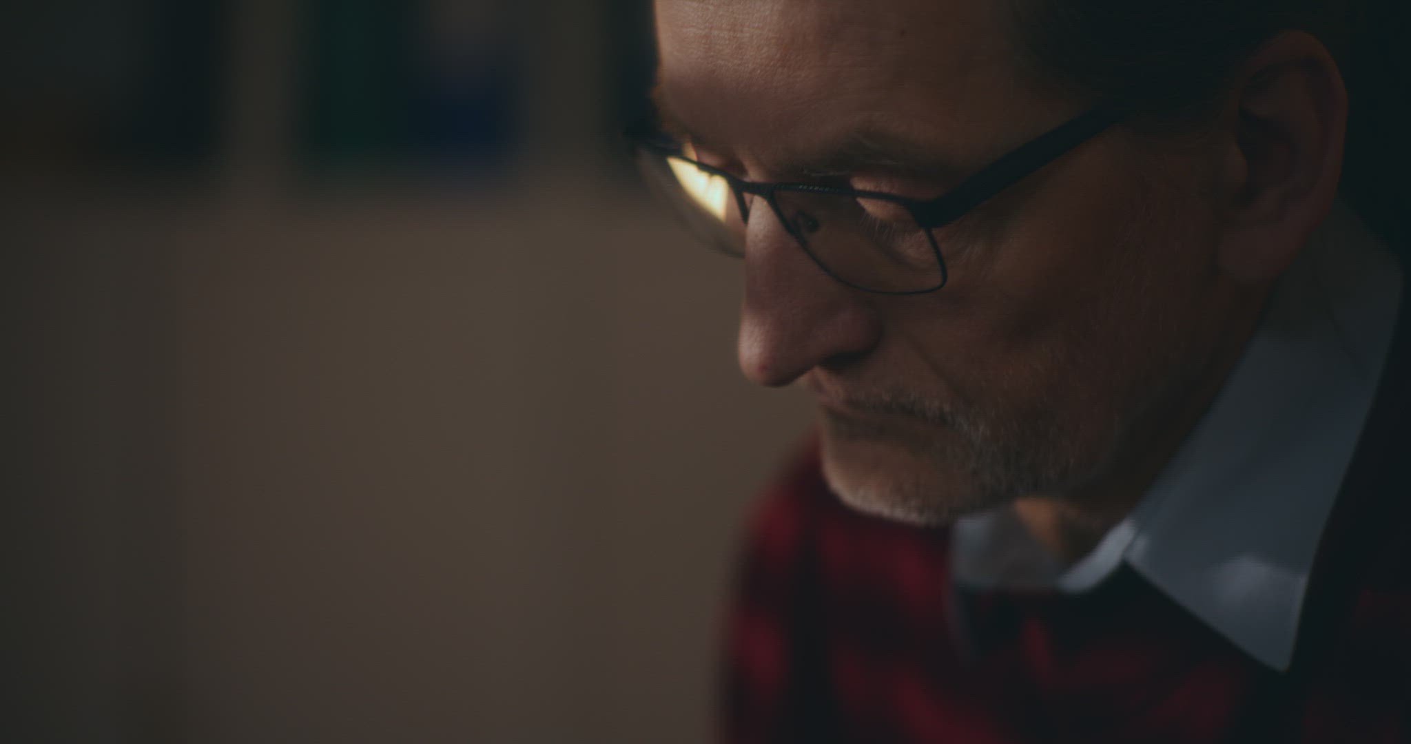 534954 - Senior elderly man in glasses surfing internet on tablet computer at night