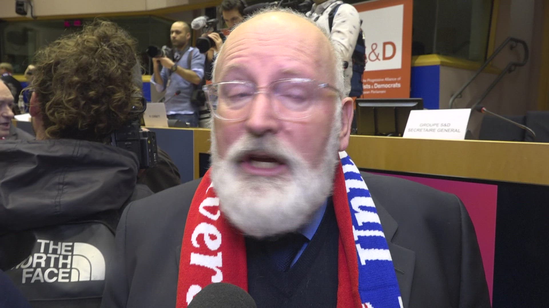 The European Parliament and the Grand Place in Brussels are illuminated for Europe D Day, one month before EU elections. IMAGES
