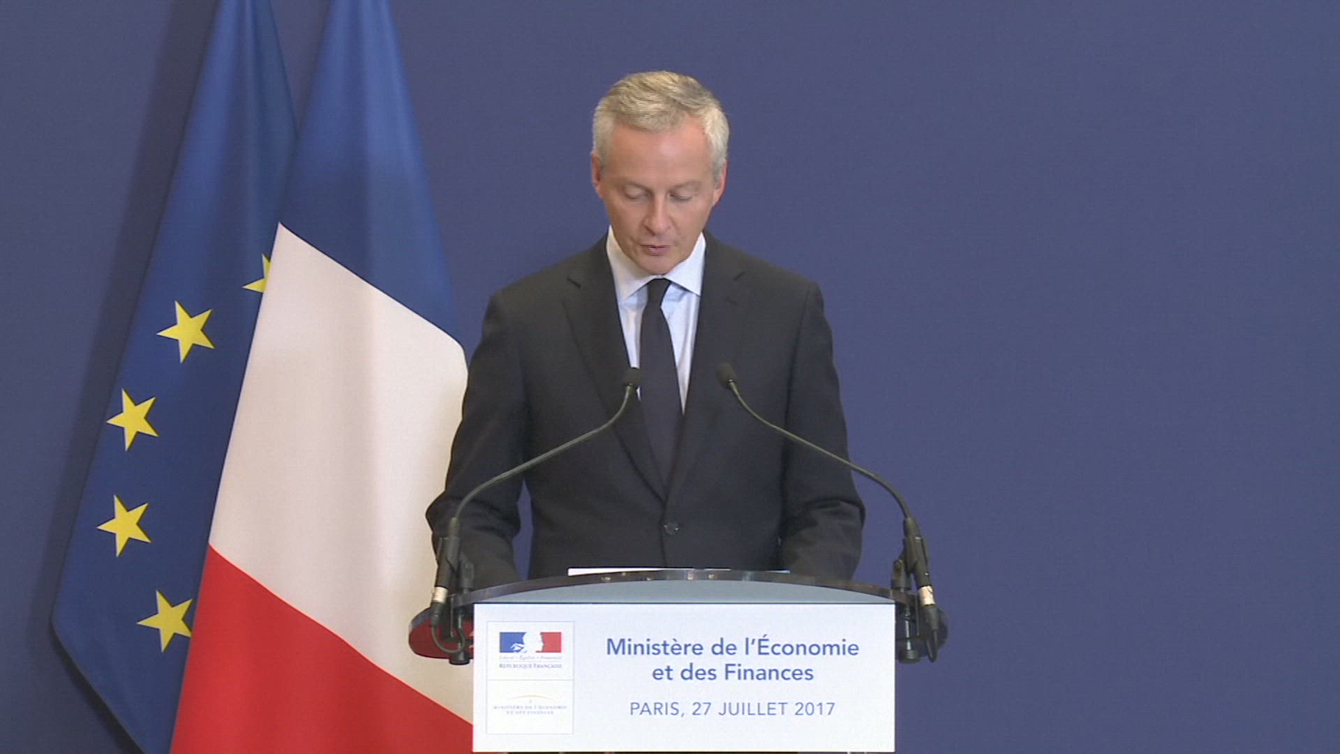 France's Finance Minister Bruno Le Maire says the G7 must provide a "united front" against Chinese unfair trade and industrial overcapacity, while cautioning that a trade war is to be avoided. As finance ministers and central bankers from the Group of Seven world powers meet for the first day of talks in northern Italy's Stresa, Le Maire tells journalists that "the first challenge" is to "define fair trade rules with China." IMAGES AND SOUNDBITES