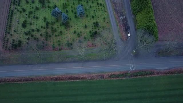 Aerial flyover of a Christmas Tree farm, showing trees ready for picking in the run up to the festive season