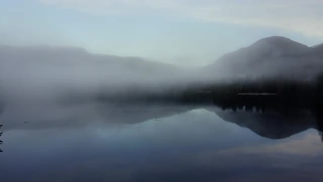 Aerial View above a low cloud base in a valley in the early morning