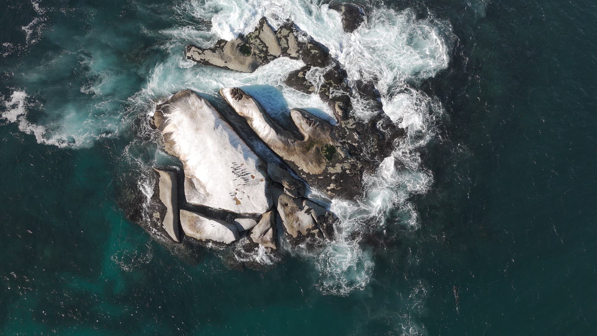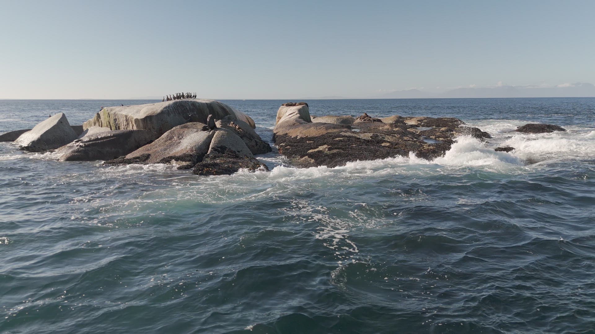 A rock in False Bay, South Africa serves as a haulout for Cape Fur Seals.