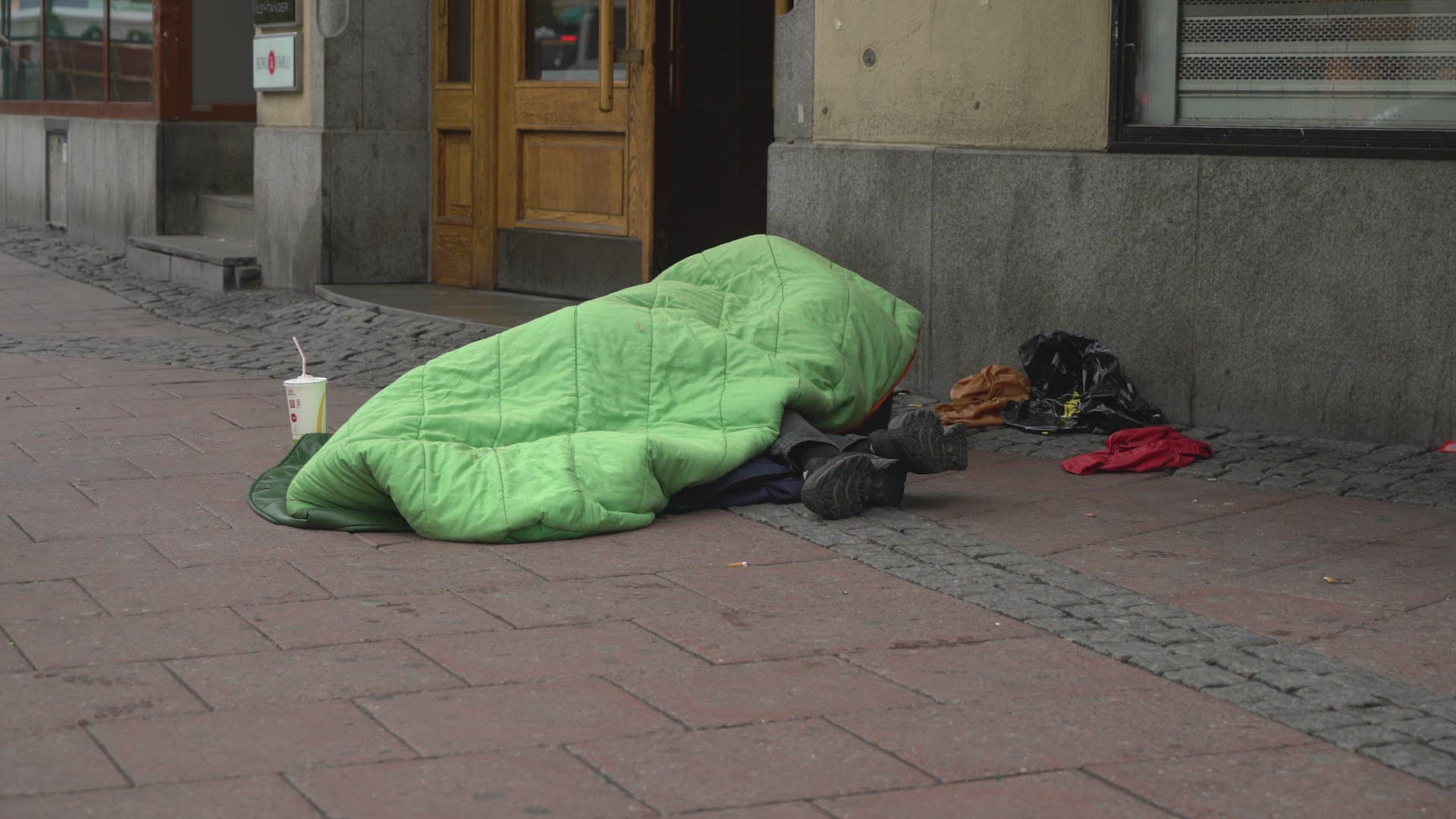 boy with bicycle walking up very steep street in central stockholm - climbing