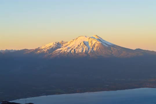 1035697 - Aerial view with drone with Lake Llanquihue and the Calbuco Volcano at sunset