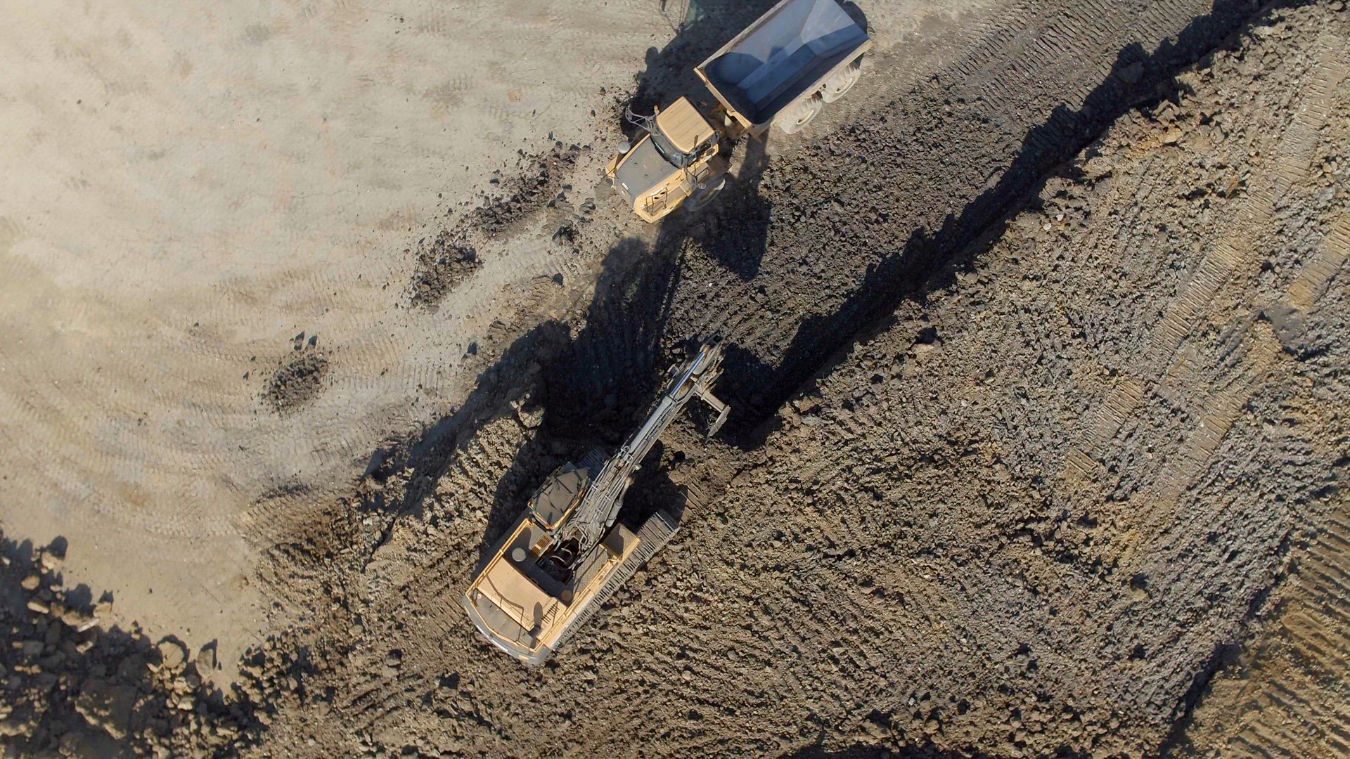 Tipper Truck Being Loaded Up With Earth by a Digger