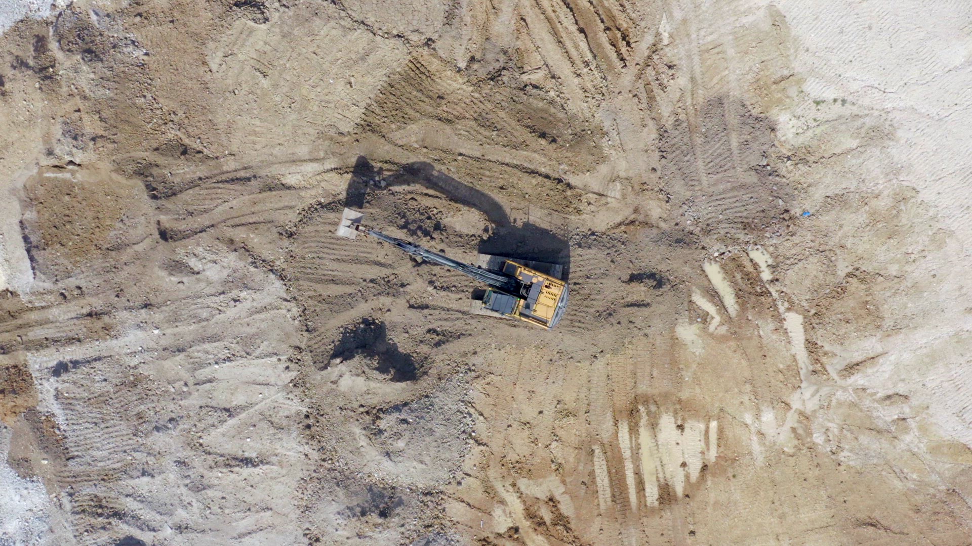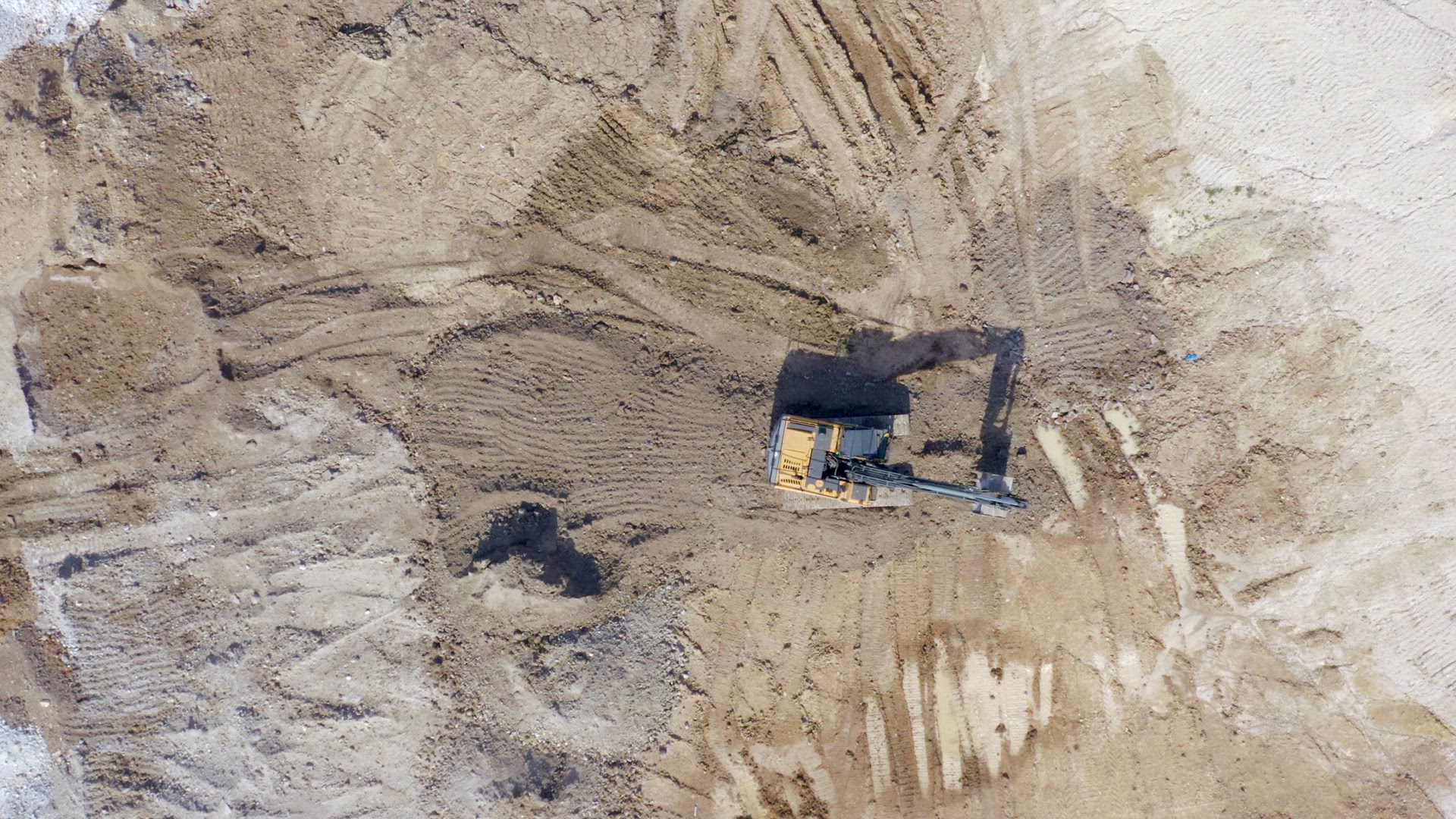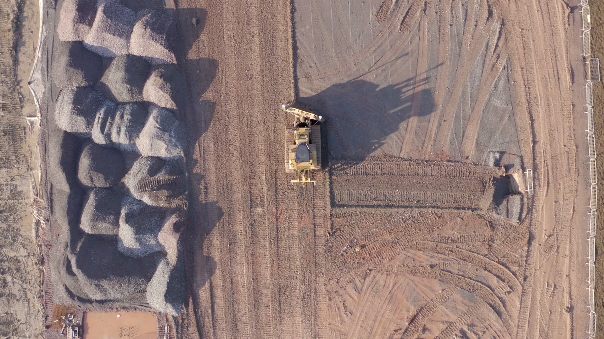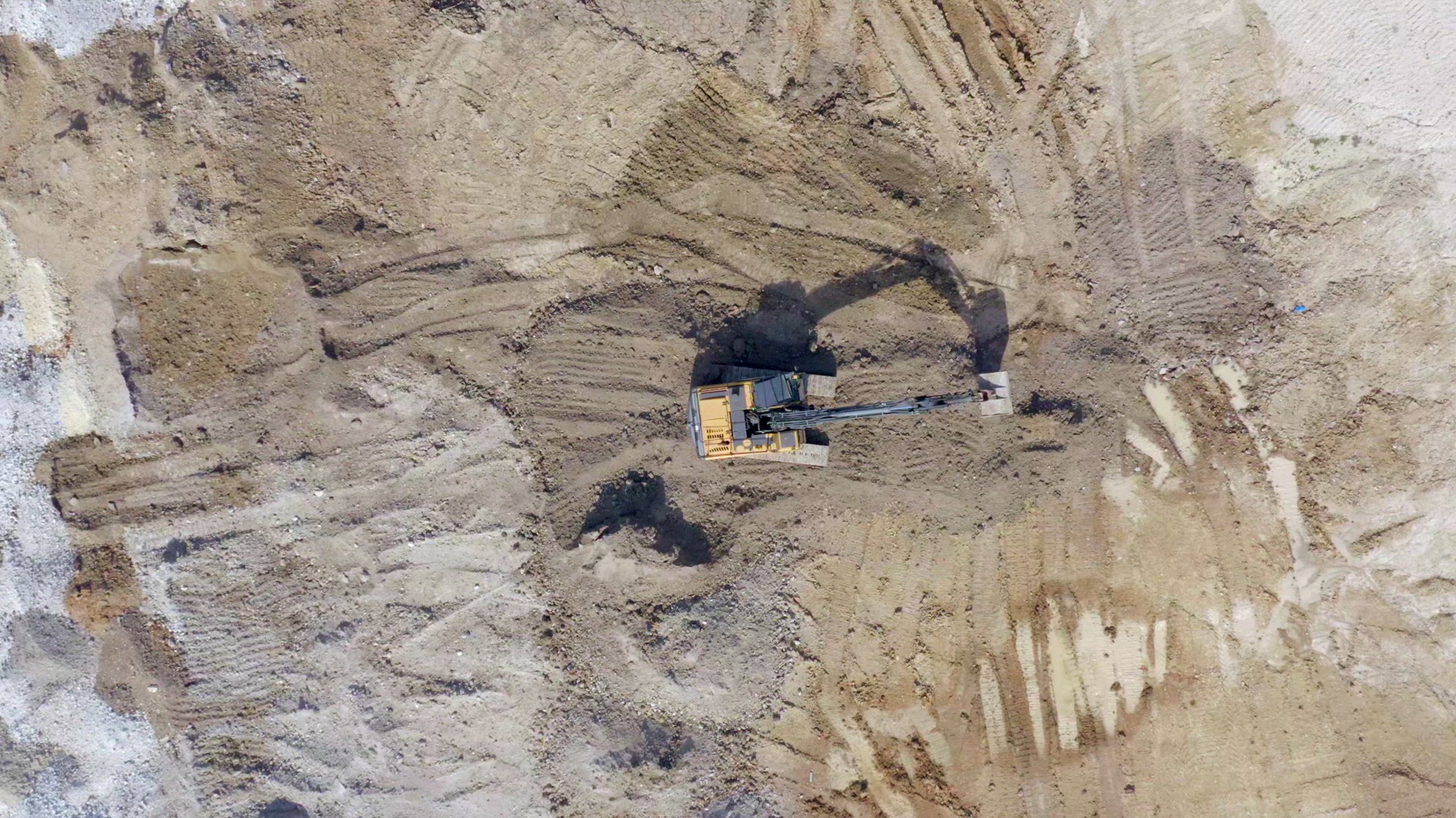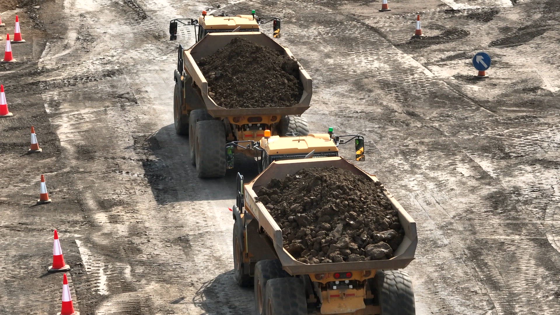 Diggers and trucks used in the construction industry for groundworks to create flat and sturdy foundations for buildings to be constructed moving large quantities of dirt. The earthworks process is one of the first processes of building large constructions
