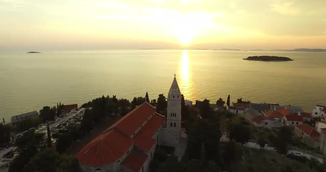 Aerial view of the bay surrounding Hvar, a small island of Croatia close to Split. A popular tourist destination for European travellers