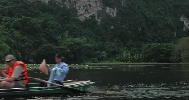 A tour boat in Interlaken, Switzerland, crosses the blue waters surrounded by beautiful mountains on a cloudy day