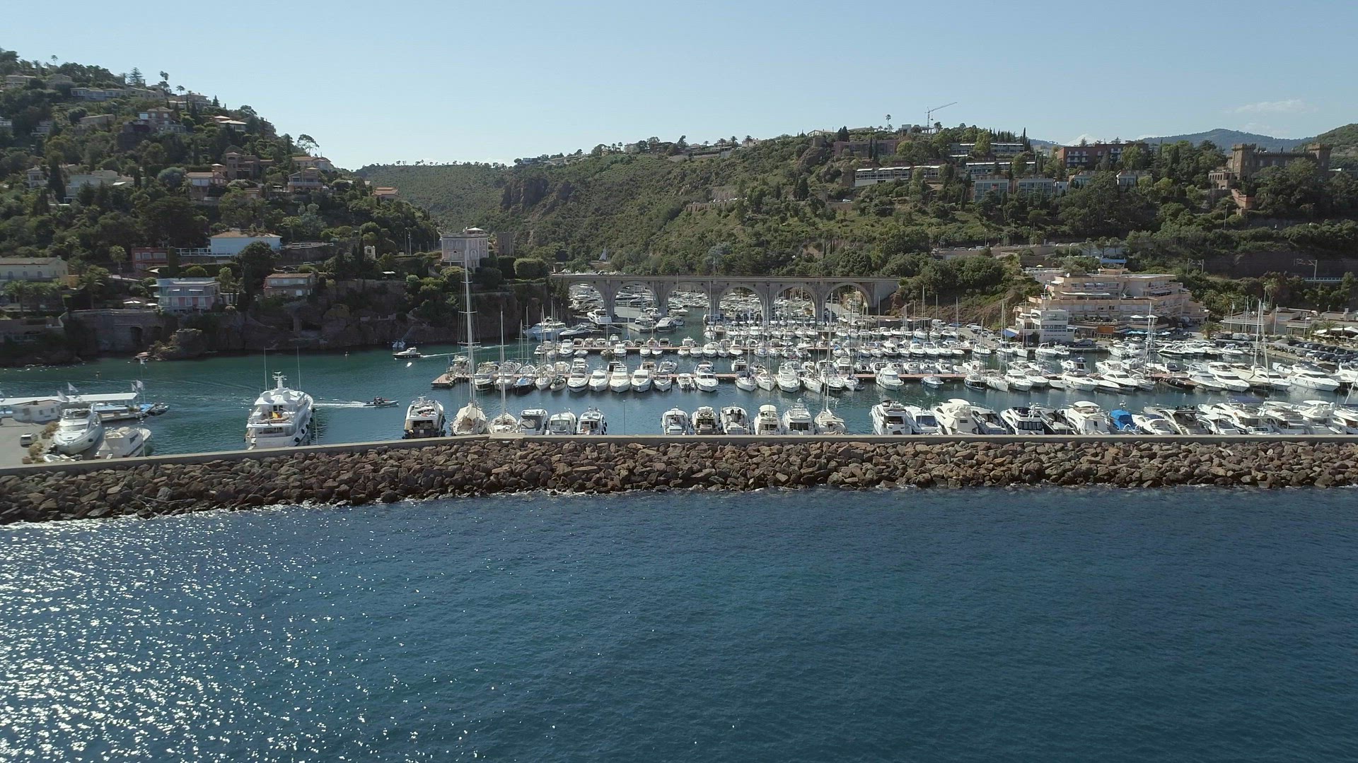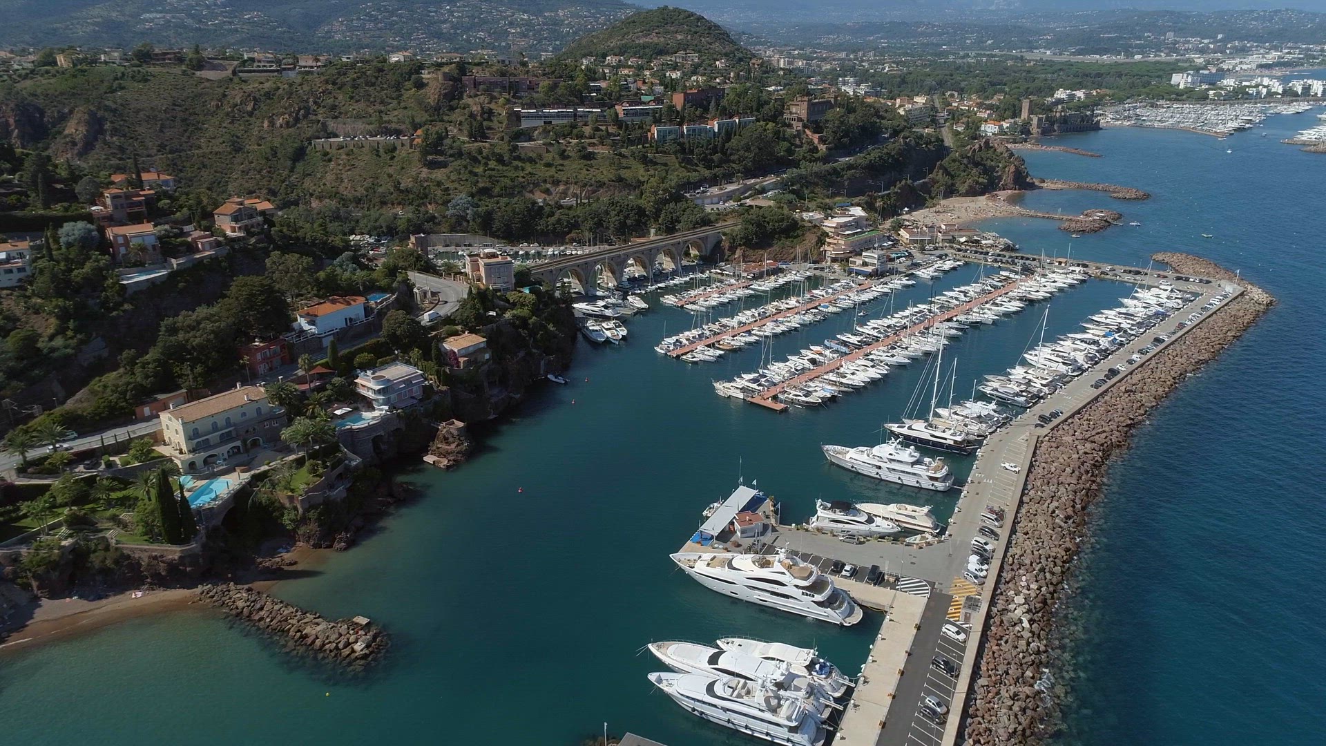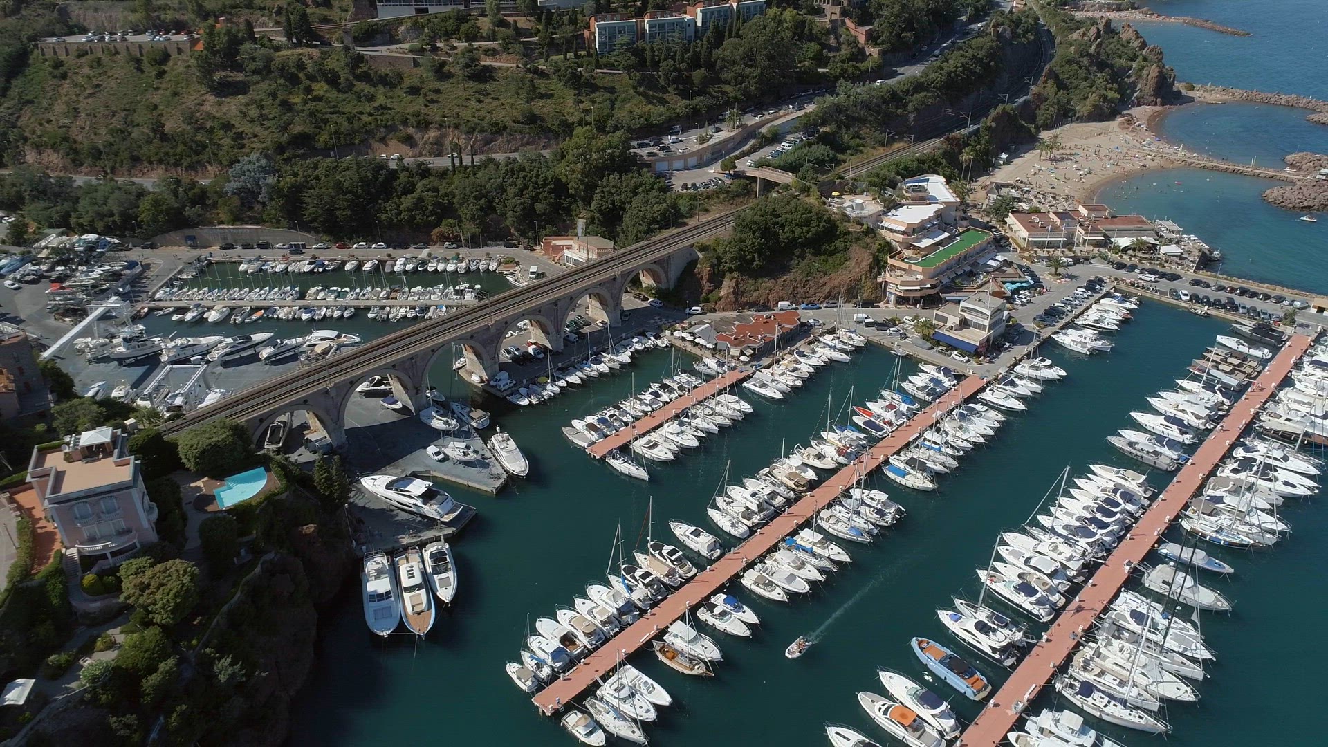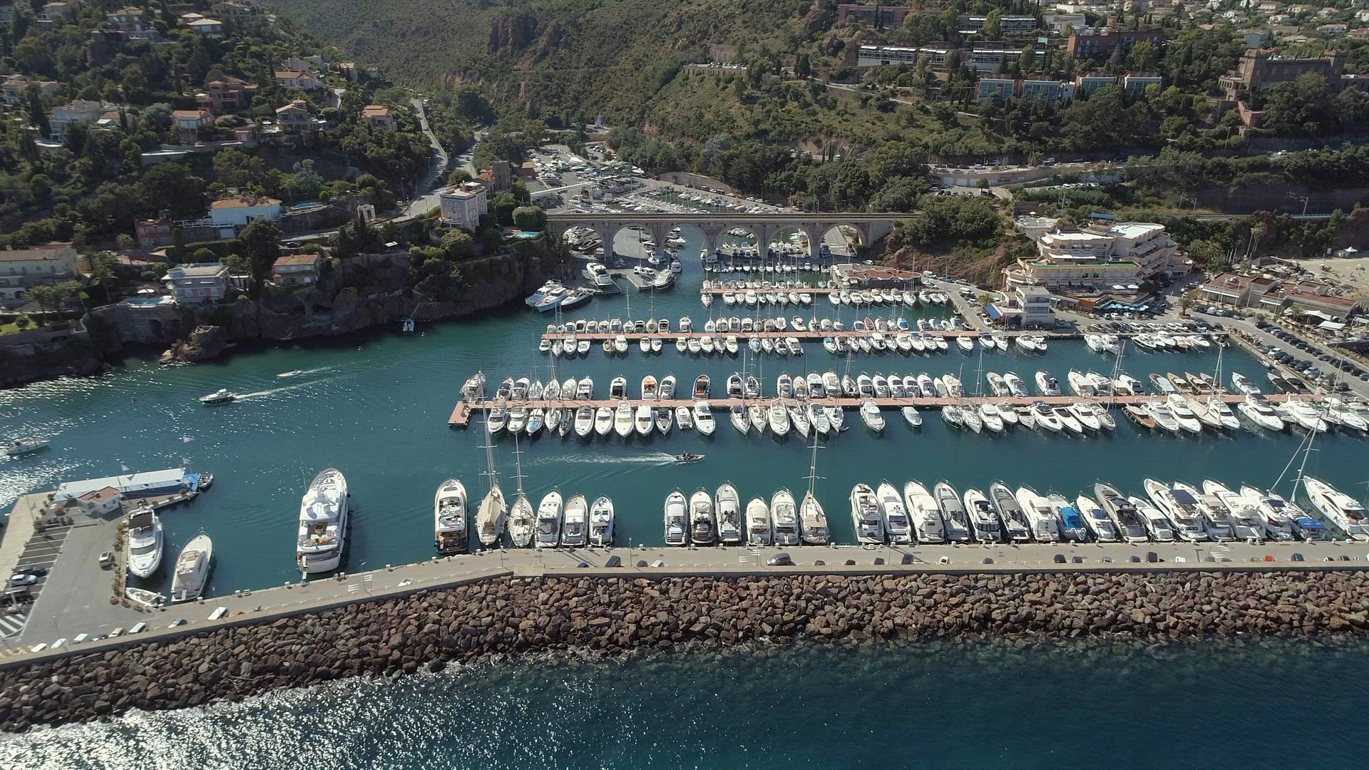 Bird's Eye view of a marina filled with ships, boats and vessels in the Mediterranean