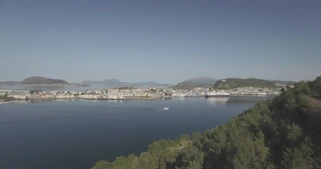 > Alesund City on the West Coast of Norway at Sunset Aerial View