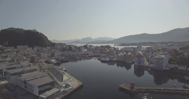 Alesund City on the West Coast of Norway at Sunset Aerial View