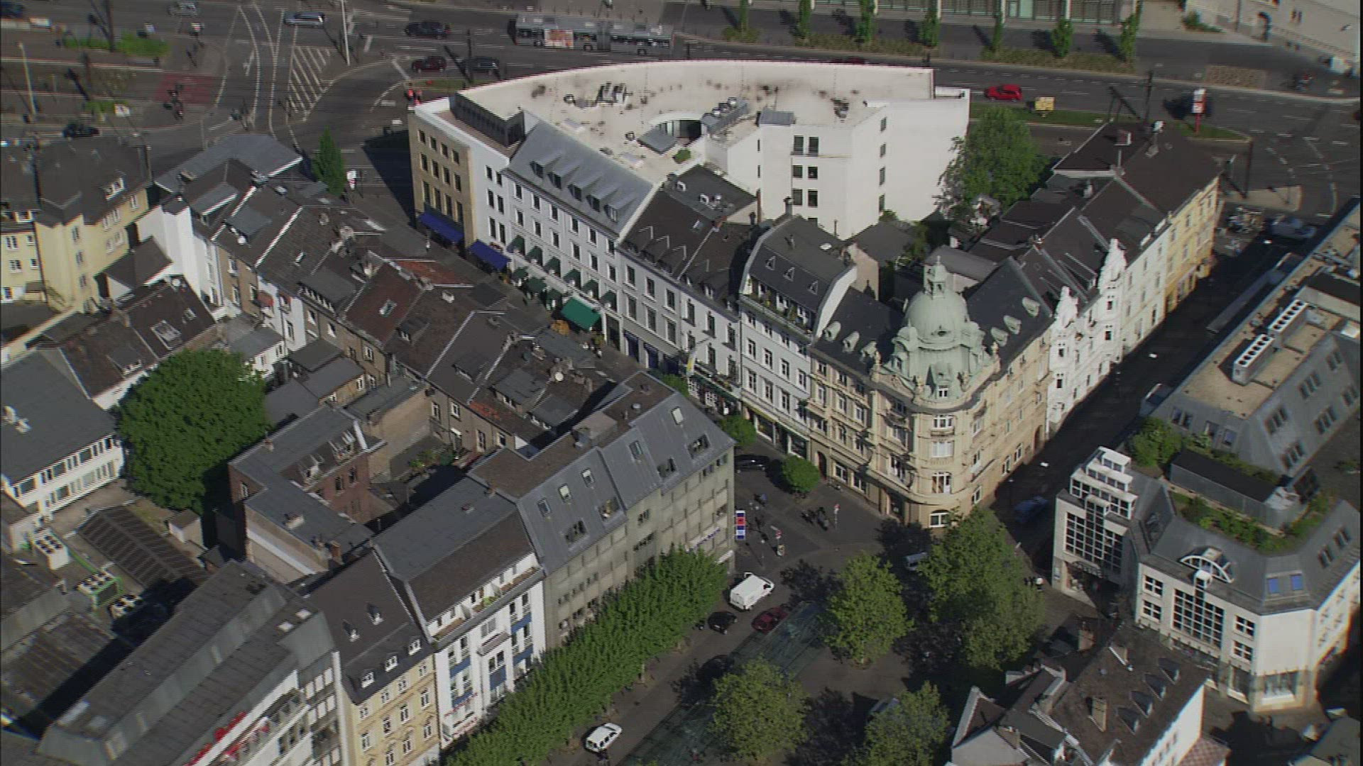 Aerial view of the Schloss Drachenburg overlooking the Rhine in Western Germany in the fall.