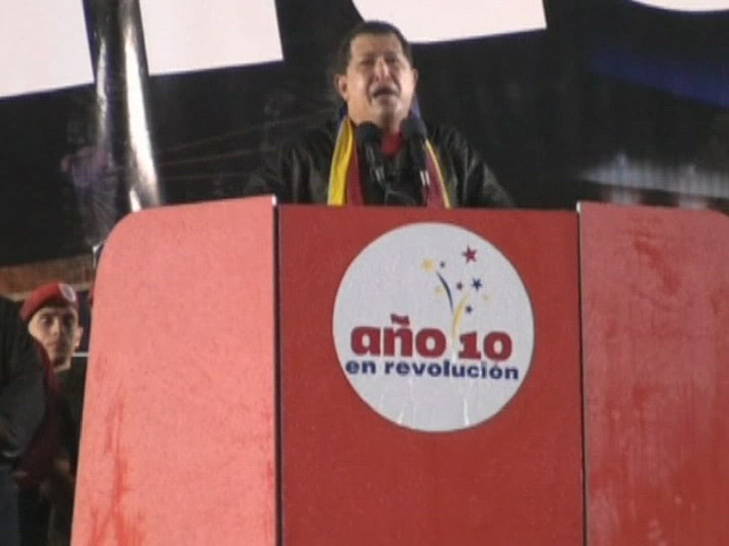 More than a decade after his death, the late President Hugo Chavez remains at the center of a movement in Venezuela. As his loyal successor, President Nicolas Maduro, launches his presidential campaign for the July 28 election, he plays Chavez's final presidential campaign song from 2012. "Today we start the campaign and Chavez must come on stage with his unforgettable song," Maduro told a large crowd in Caracas. IMAGES AND SOUNDBITES [COMPLETE WITH 362P8QF]