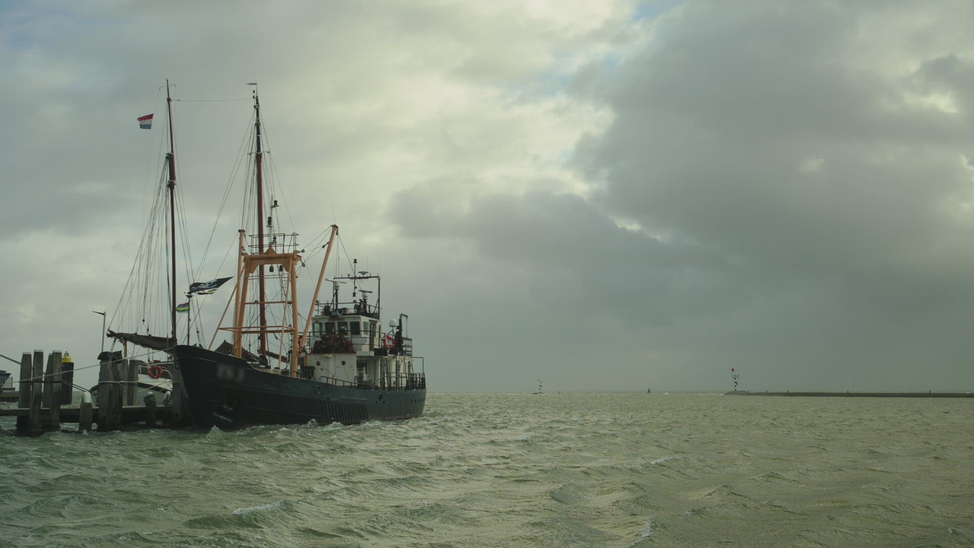 Bird's Eye View of the bow of a luxury ship at sea.
