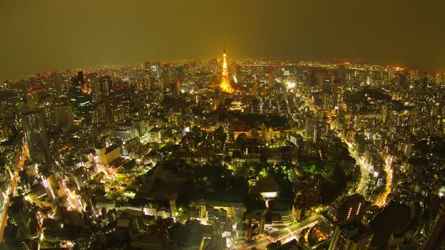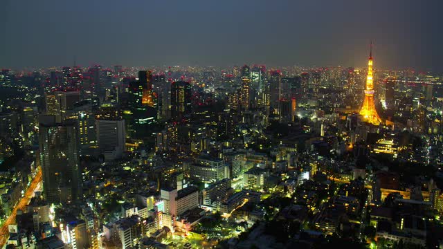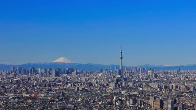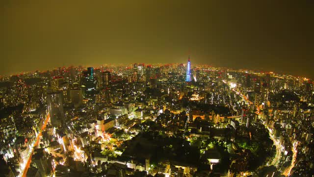 An aerial view of a busy crossing and tourist area of Asakusa. A buddhist temple can be seen in the suburbs of Tokyo