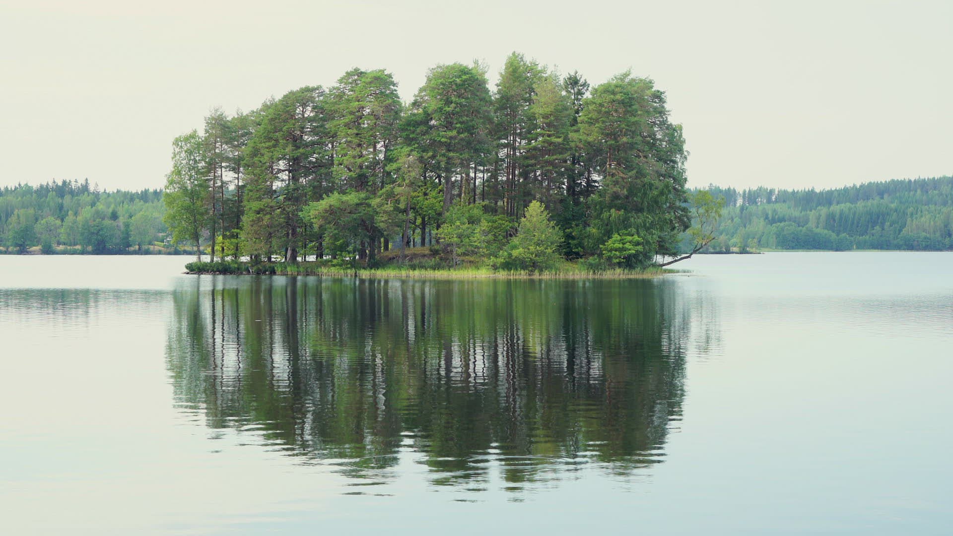 abandoned summer cottage on small island in lake - point of view from canoe