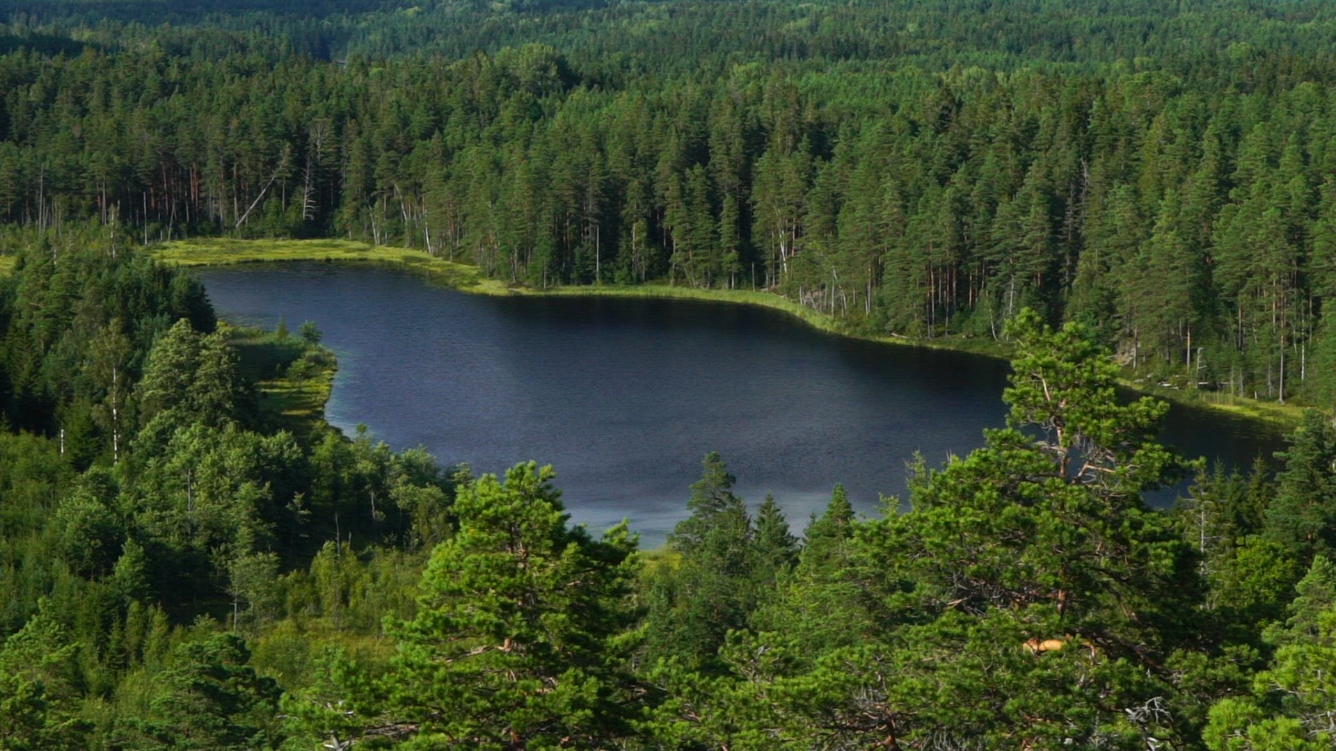 small lake in forest - lake surrounded by trees - viewpoint in Dalsland, Sweden