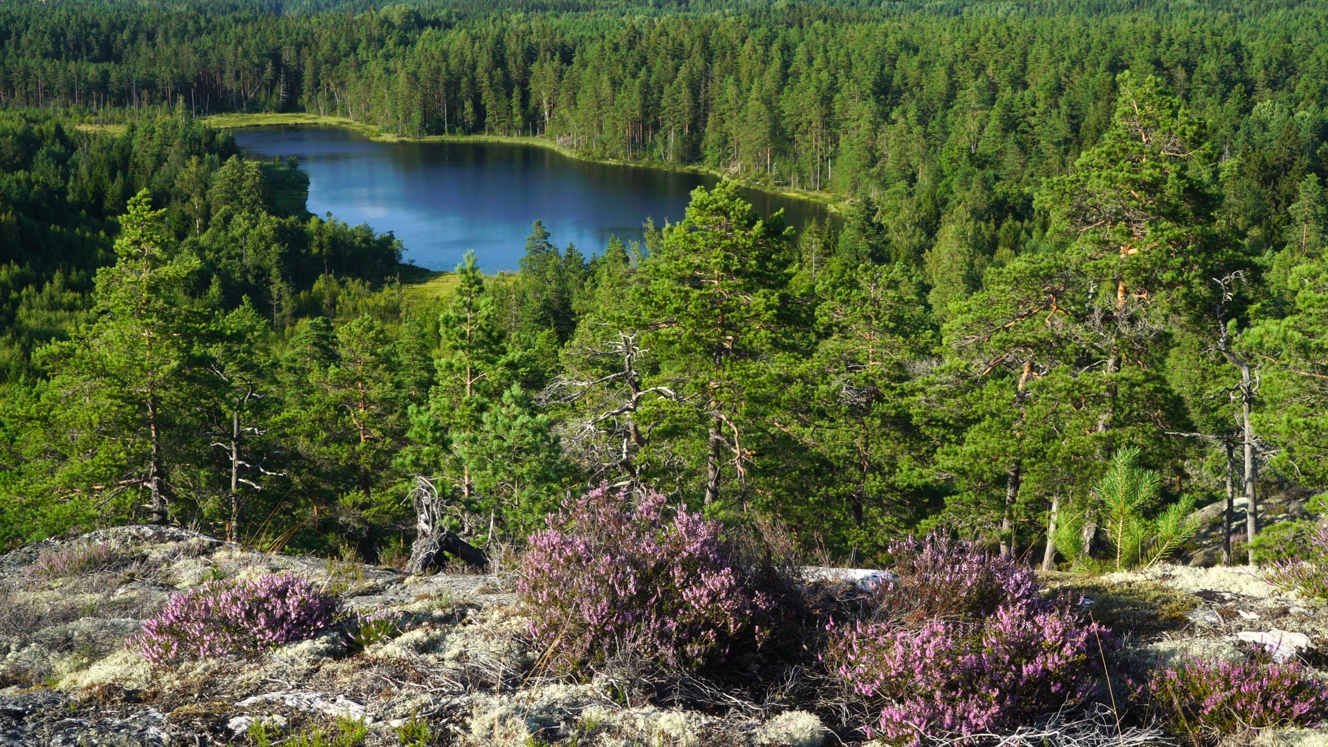 2246292 - view over landscape in Dalsland - forests and lake - heather.MP4