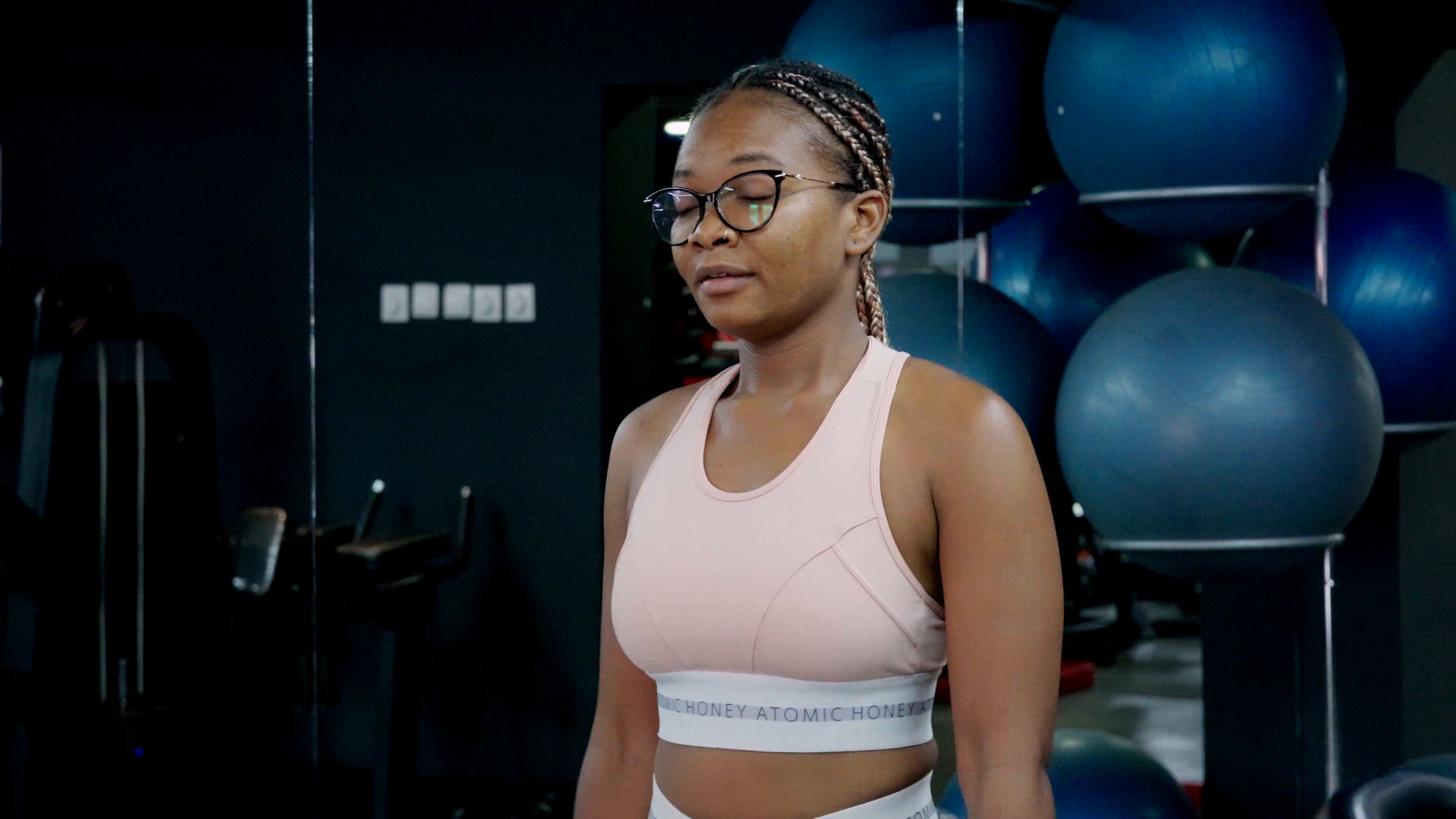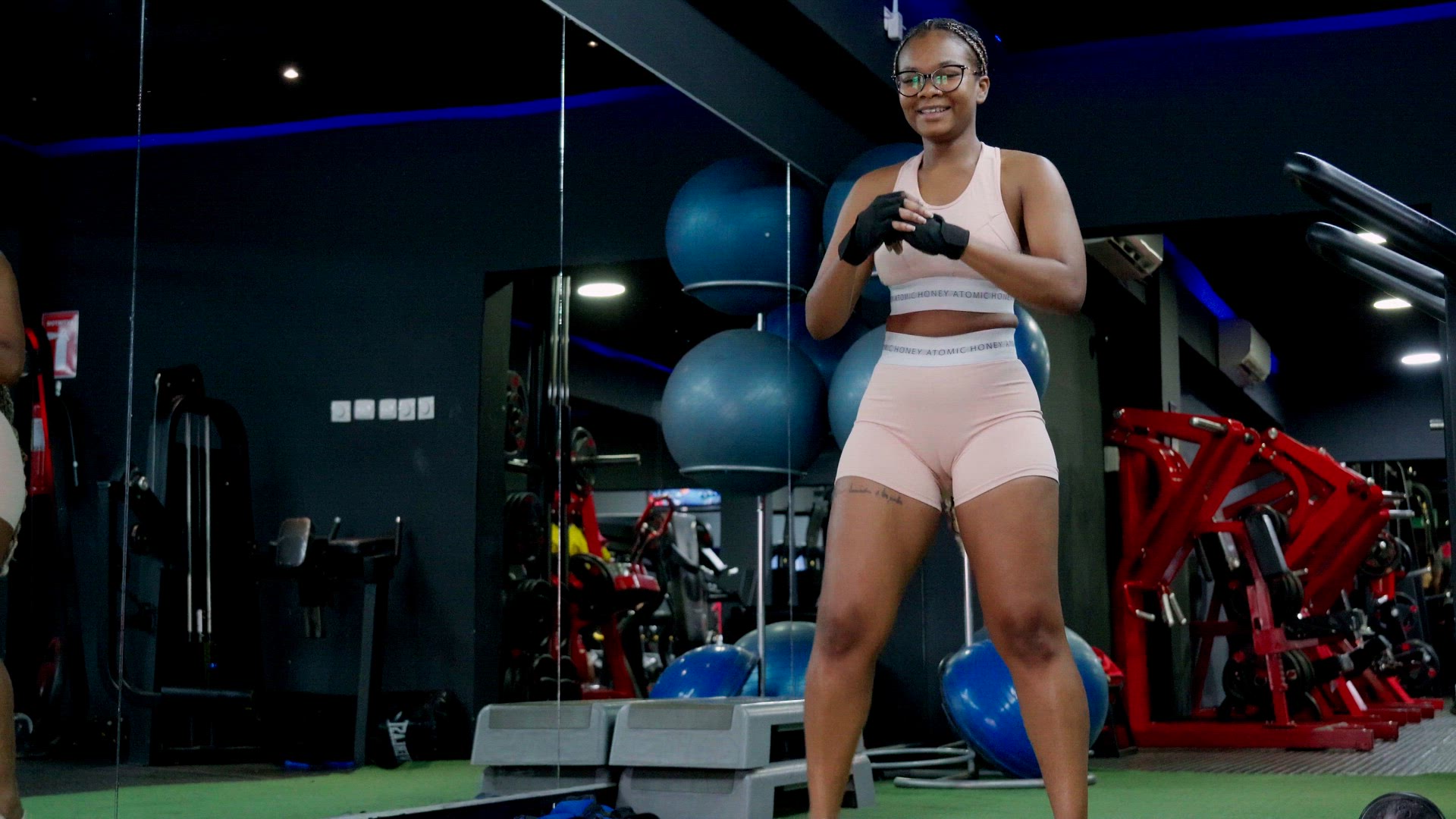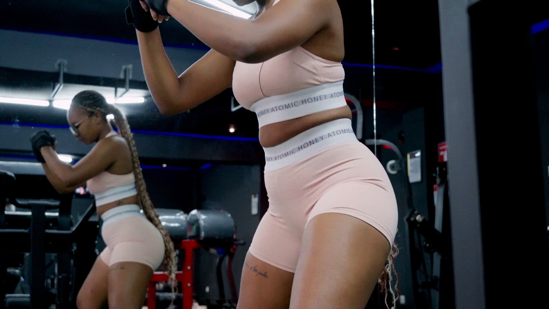 > Young black woman exercising in the gym