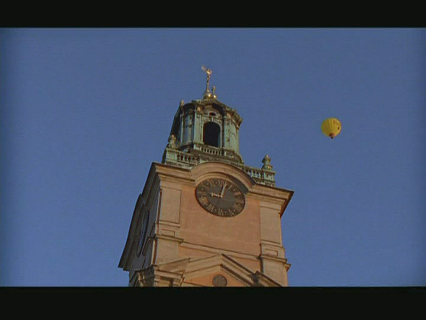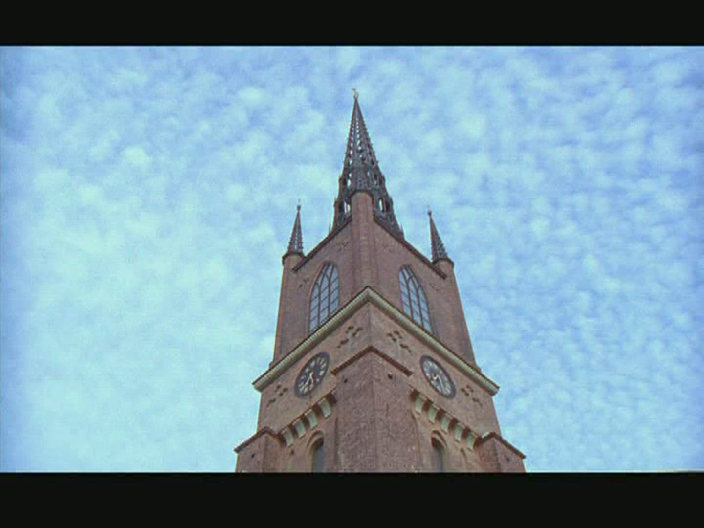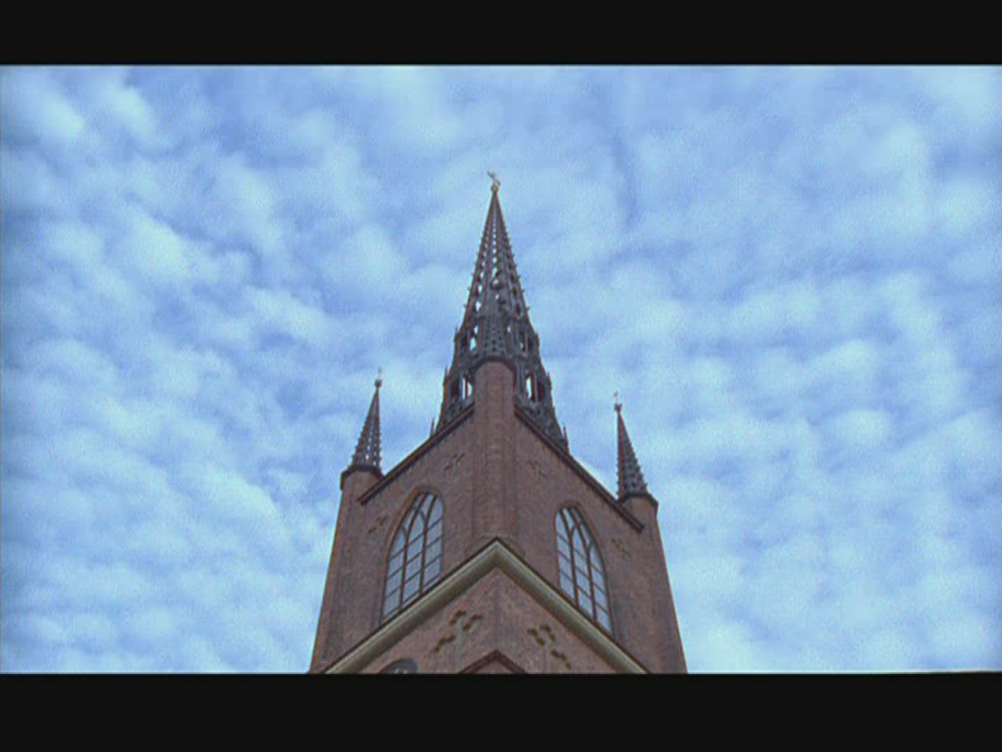 exterior Riddarholmskyrkan in Stockholm - low angle - white clouds moving slowly - blue sky