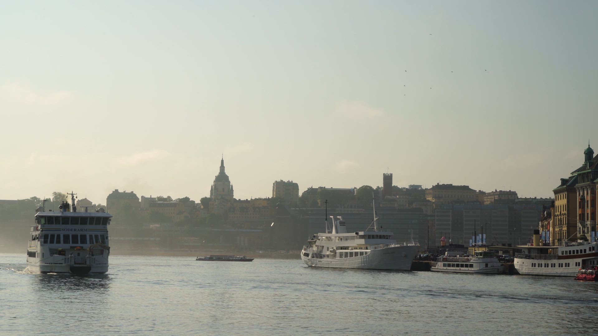 2251404 - stockholm - skyline - boats - foggy morning - 1.MP4
