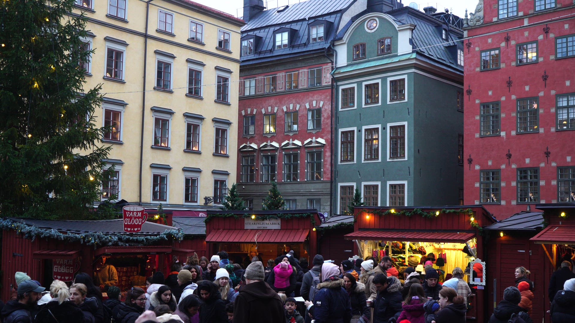 christmas decoration hanging in shop window - christmas market in old town stockholm