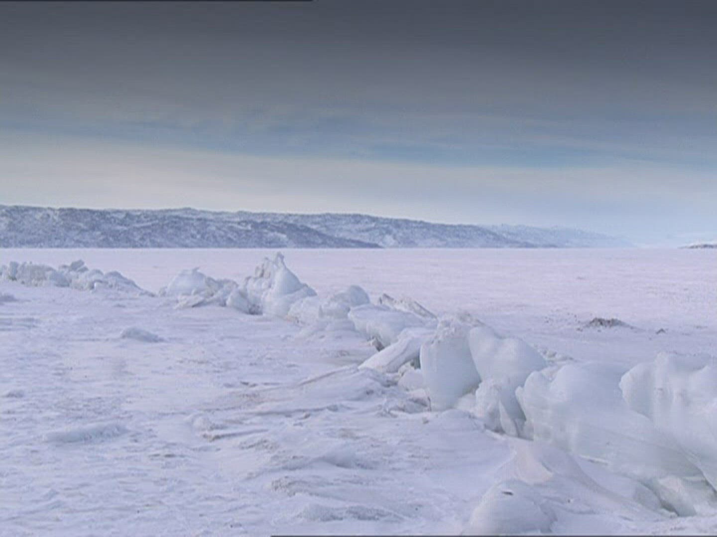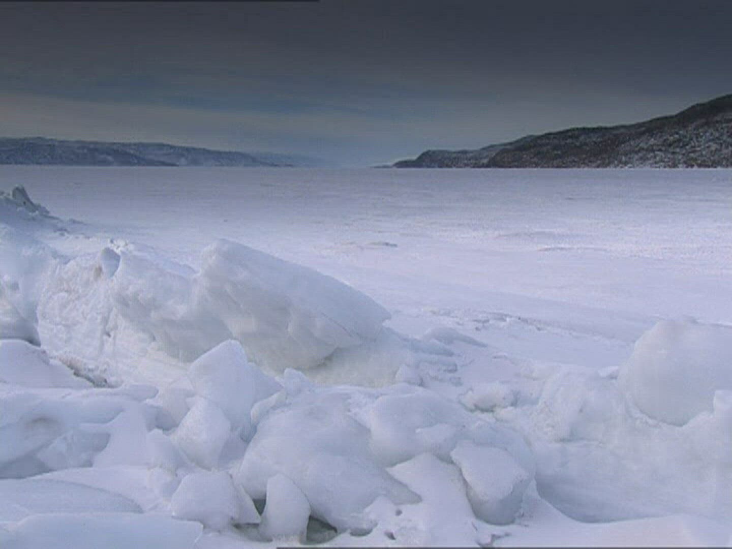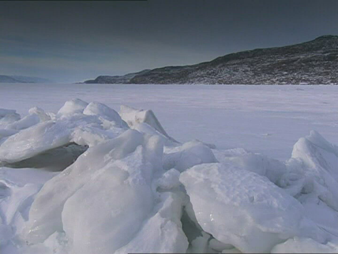 Chukotka In Winter at waters edge with ice and snow
