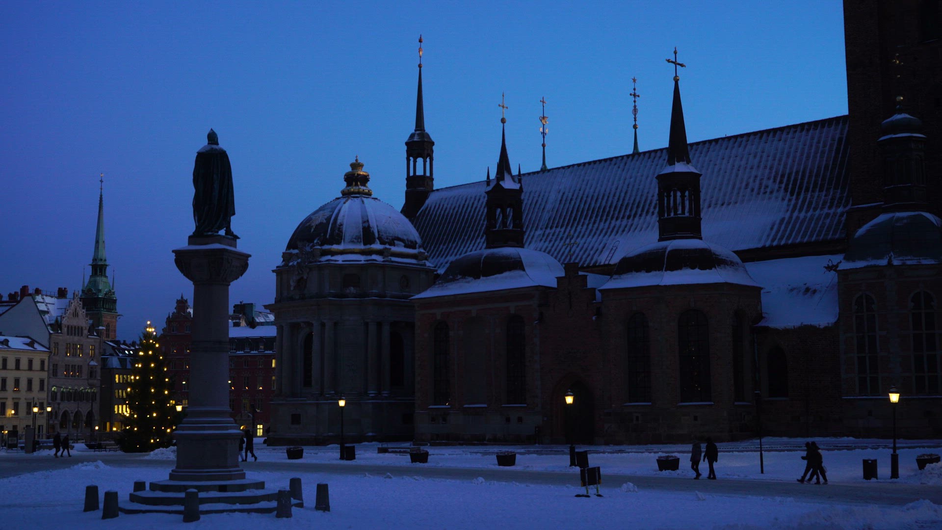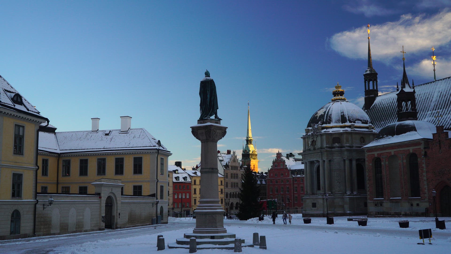 riddarholmen in Stockholm - Birger Jarls Torg at twilight - christmas tree - wintertime