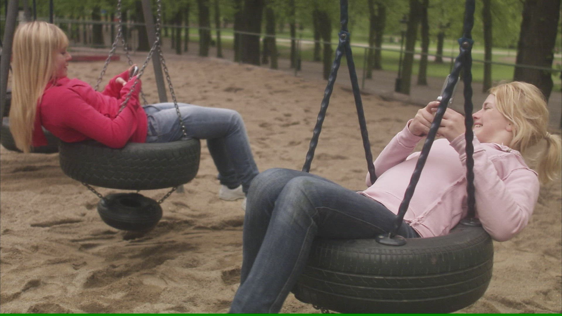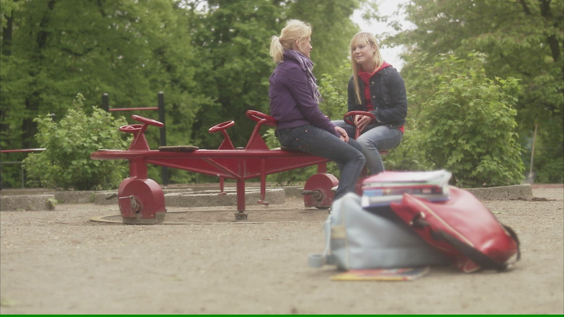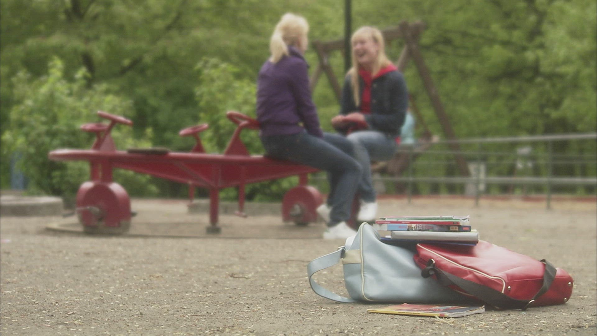 girls playing at playground - spinning - shot 1960´s