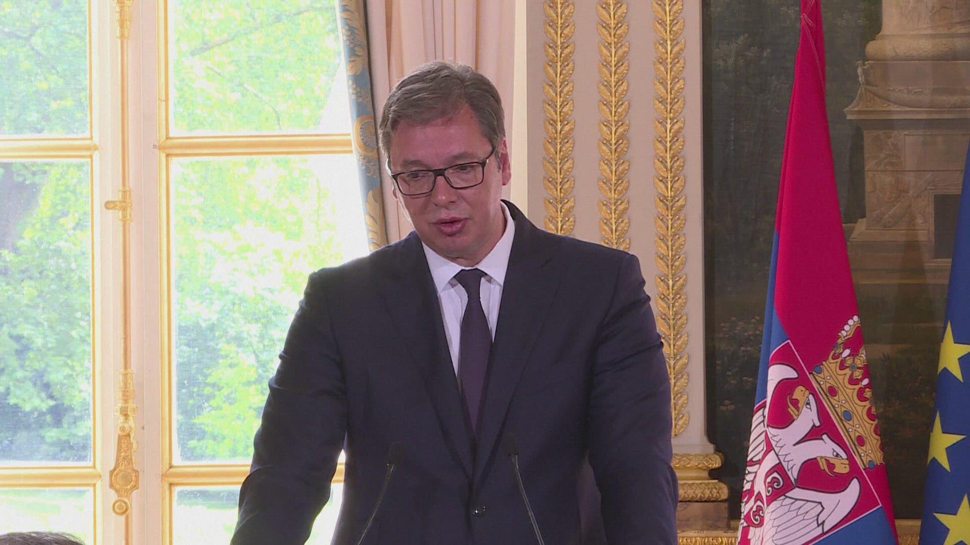 The European Union Commission President, Ursula von der Leyen, is received at the Presidential Palace by the French President, Emmanuel Macron, for talks on the European agenda. IMAGES