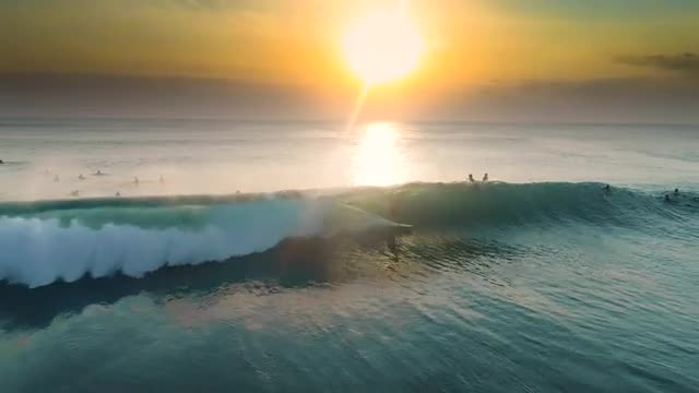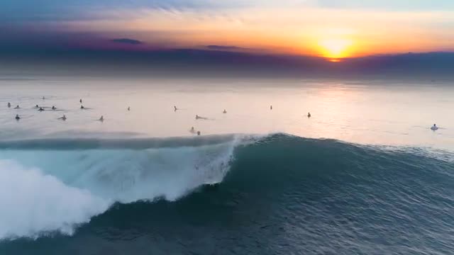 > Low angle in water POV of surfer dropping in on steep winter wave leaning back to pull into barrel