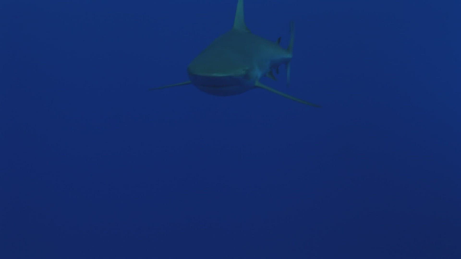 Pan to whale shark swimming at ocean surface underwater light sparkling in slow motion