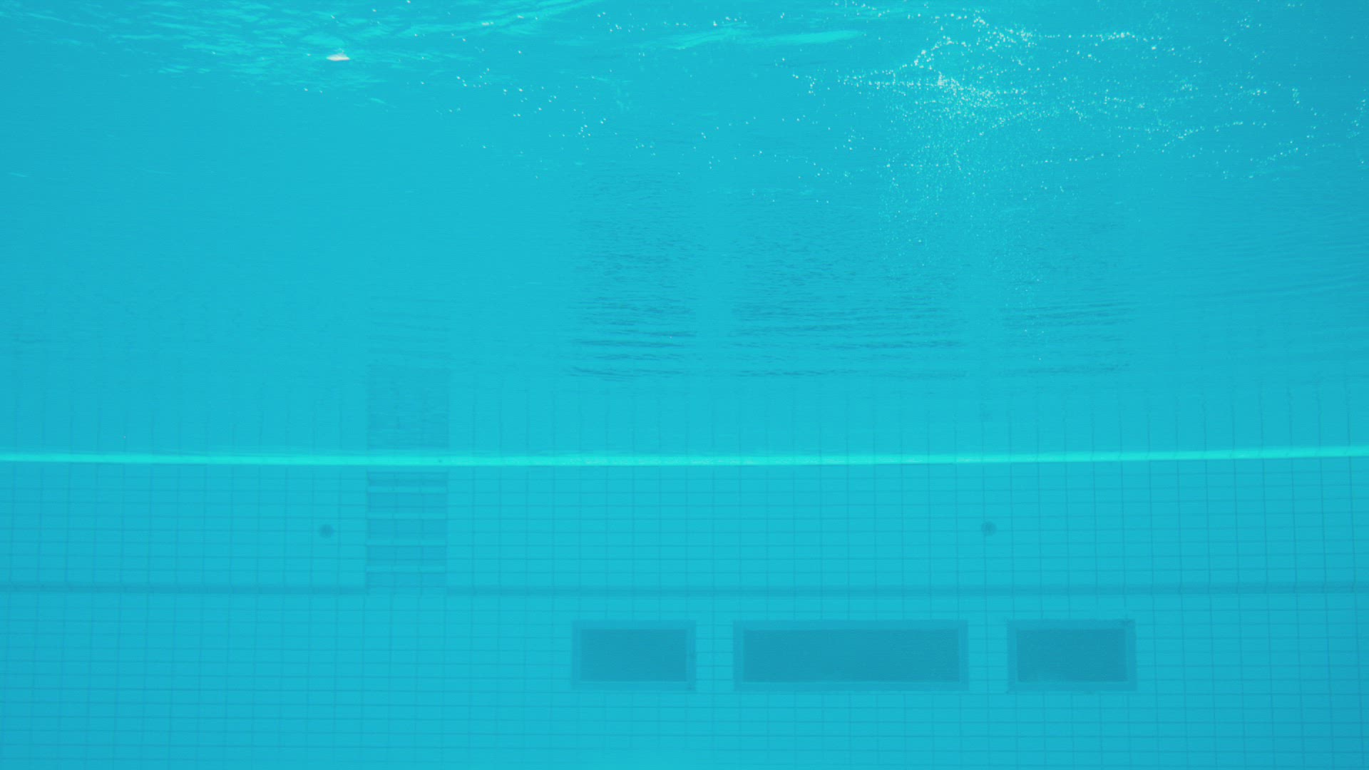 Underwater photographer swims at surface holding camera down as they kick in fins