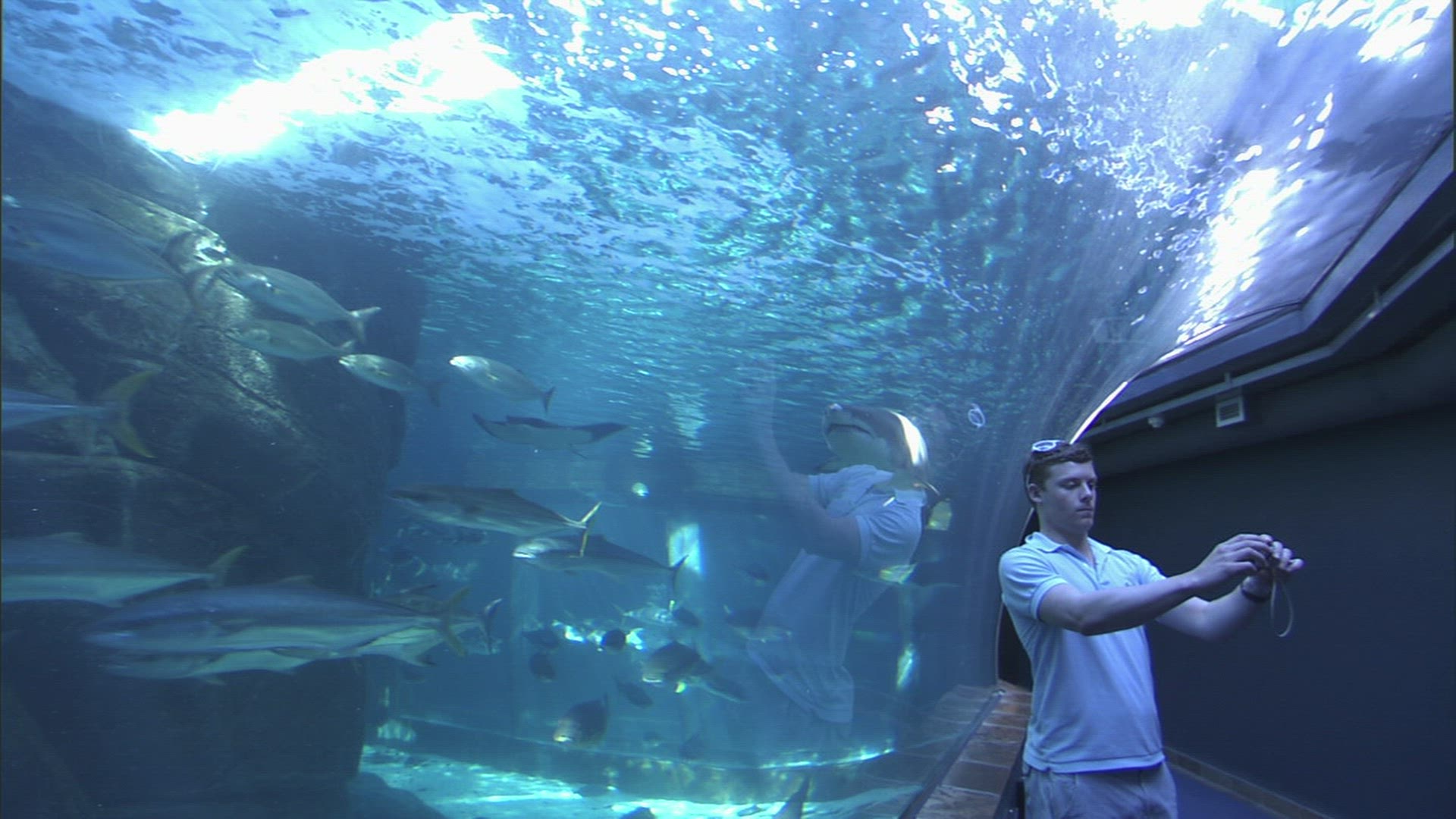 2267092 - Air bubbles catch shimmering light as underwater photographer swims to follow whale shark
