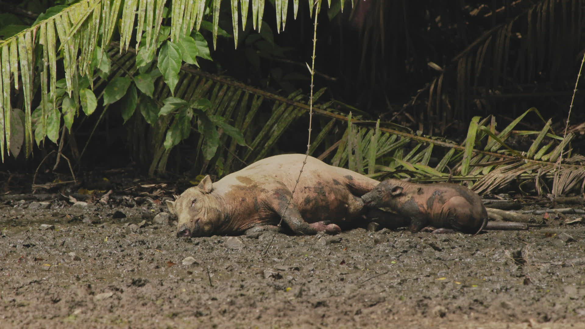 > Nursing Mother Humpback Whale Feeds Baby Calf By Shooting Fatty Milk Out Of Her Mammary Glands; 4K Underwater Footage; Low Angle POV.