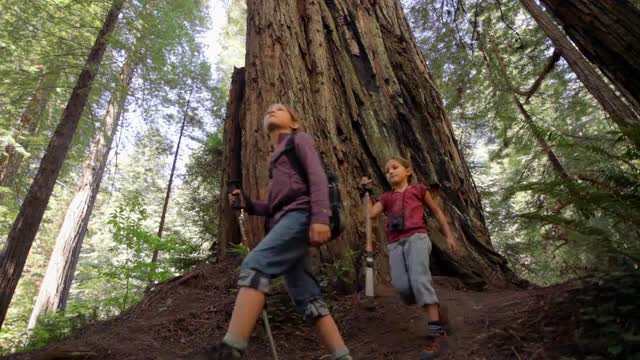 Girls explore Redwood forest