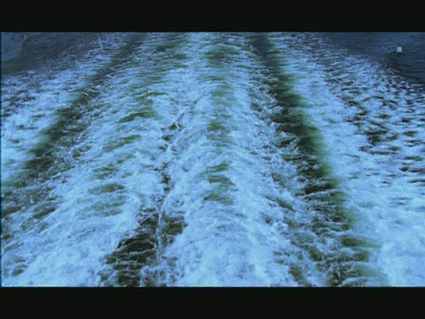 Bubbling ocean water sprays across surface as vortex turns, underwater