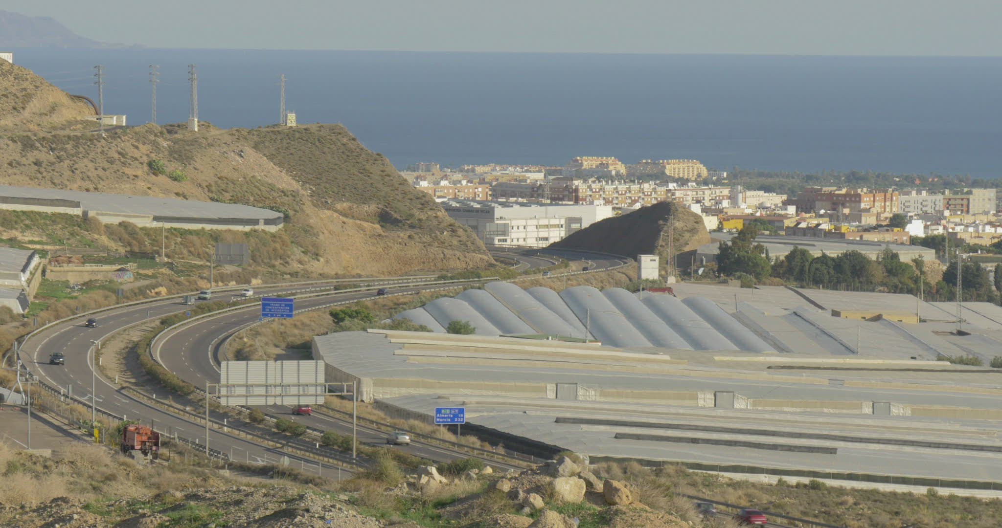 Aerial view of city with bullring and Tajo Bridge, Ronda, Andalusia, Spain