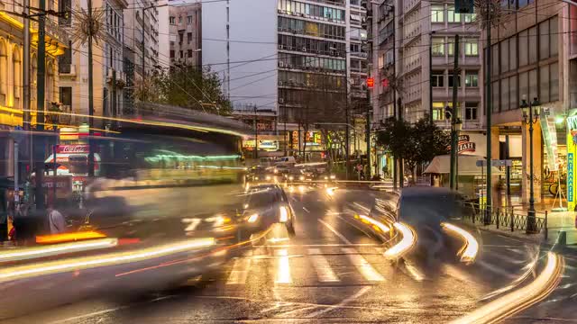 4K UHD Timelapse footage (300 frames) of traffic on a busy central street near Omomia square in Athens, Greece