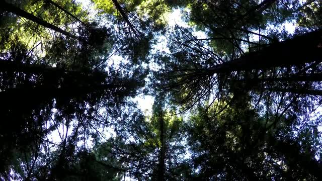 Upward view of Redwood forest in California.