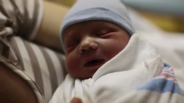 Close up of caucasian newborn baby boy