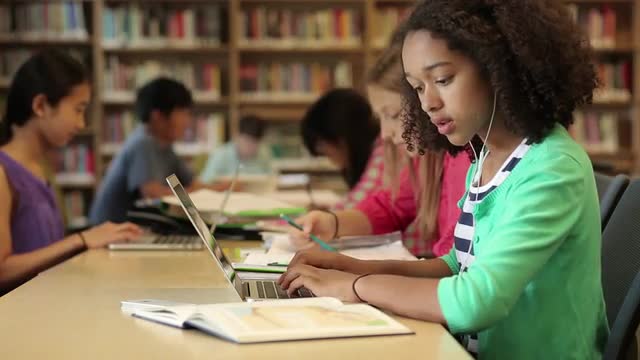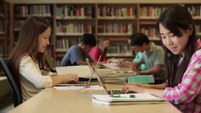 233107 - Junior high students studying in library
