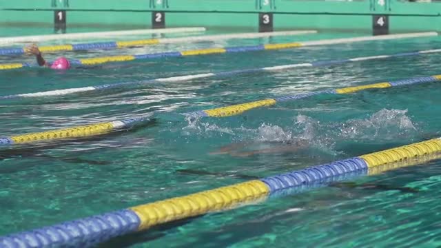 Slow Motion Of A Professional Male Swimmer Performing The Backstroke