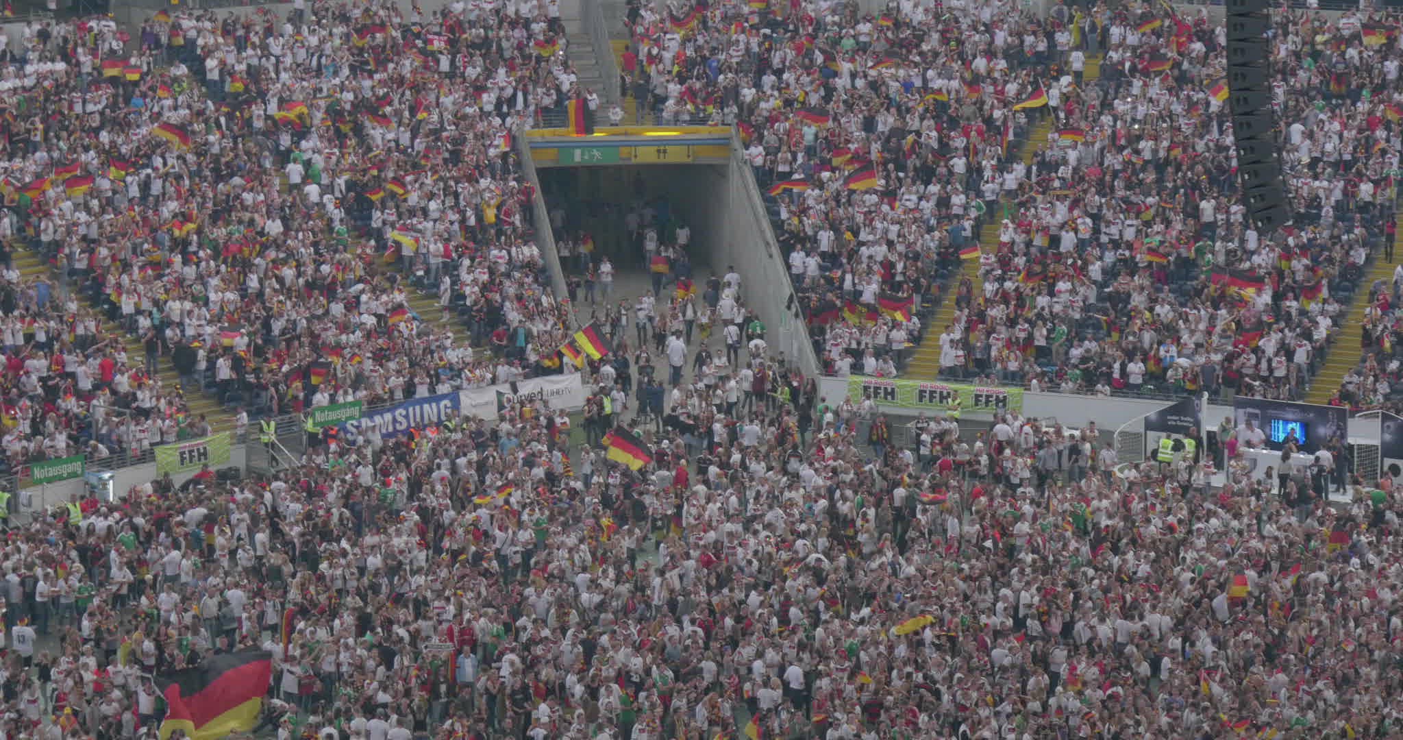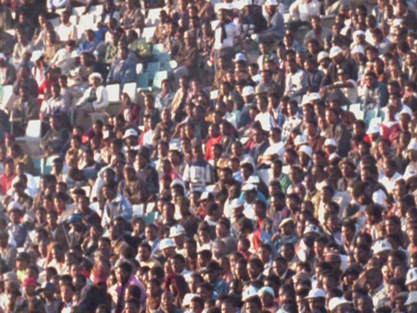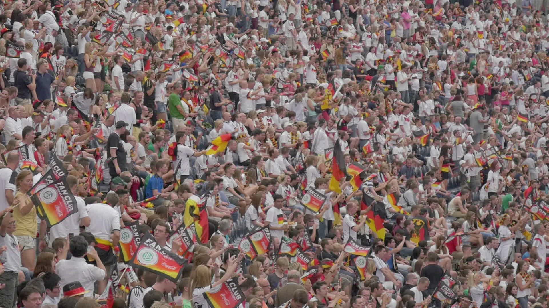 audience standing at fence cheering during the horse race