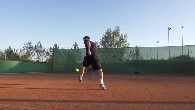 > Slow Motion Of Professional Tennis Player Hitting The Ball With Trick Shot